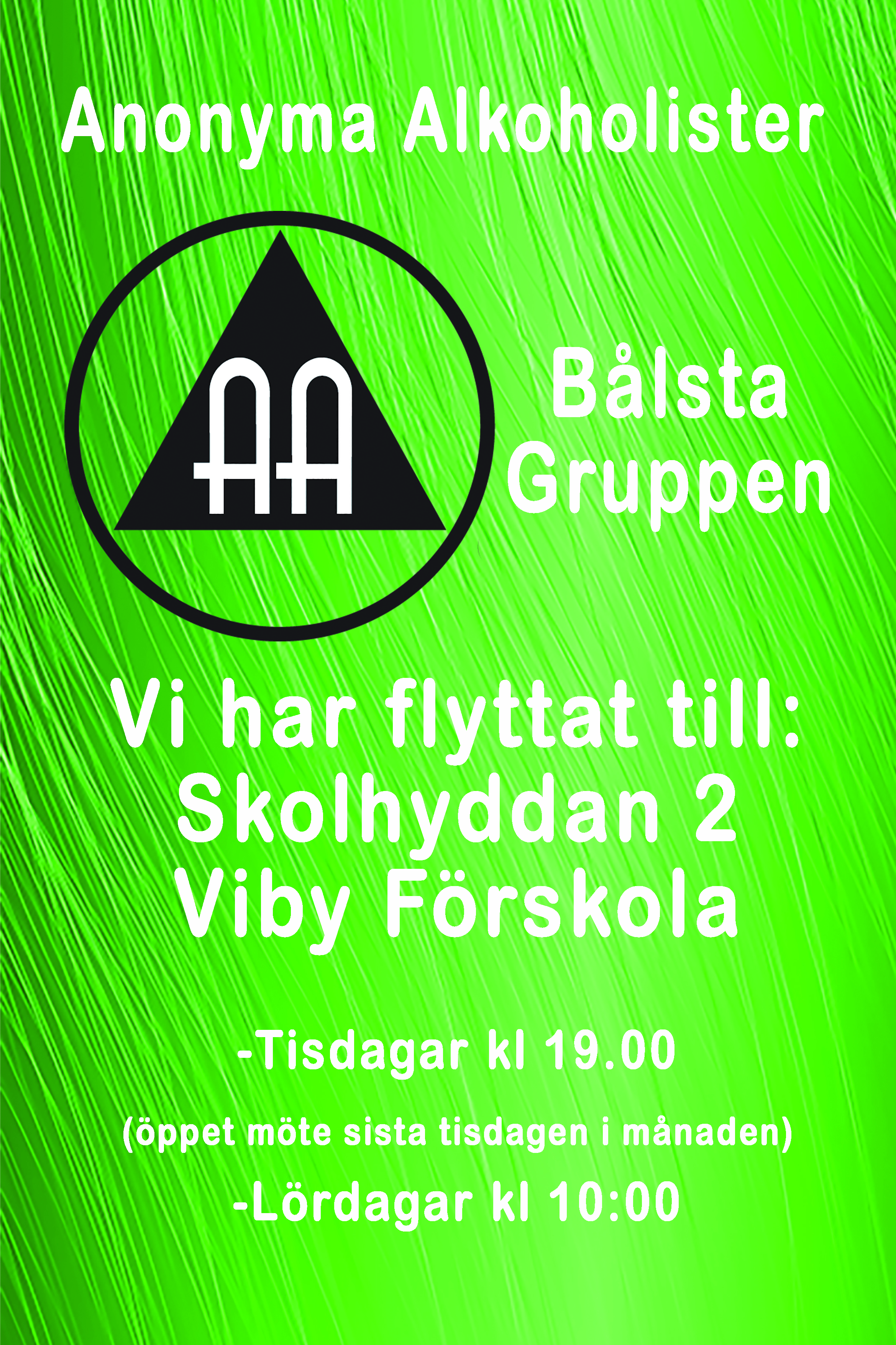 -Vi har möte varje tisdag på Viby Förskola, Skolhyddan 2,kl 19:00, och lördagar kl 10:00, på samma plats. Buss från Bålsta station linje 33, ca 9 minuter